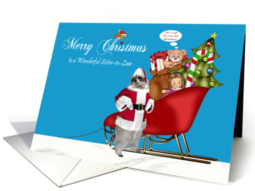Christmas to Sister-in-Law, Raccoon Santa Claus with a full sleigh