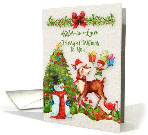 Merry Christmas to Sister-in-Law Christmas Scene Reindeer Elf Snowman