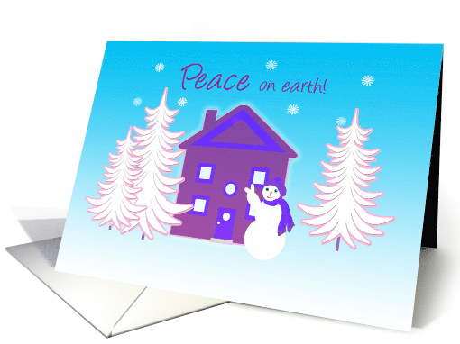A Christmas holiday greeting card featuring a snowperson in hat and scarf giving the peace sign to send to all your family and friends to wish them peace and joy this holiday season! The front is an original design by artist c.a.teresa and the inside can easily be personalized by you with any names, a personal message or a special photo that can be uploaded at no additional cost to you!