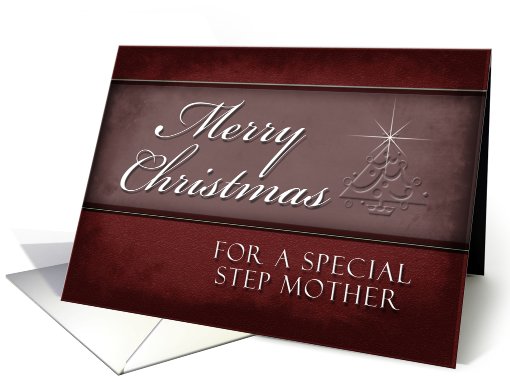 For Step Mother Merry Christmas, Red Background with Christmas Tree
