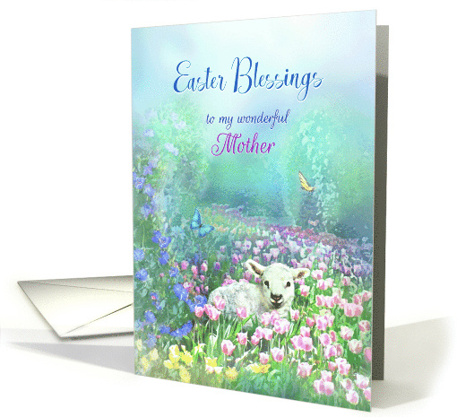 To My Mother, Easter Blessings White Lamb and Tulipsfor Mom