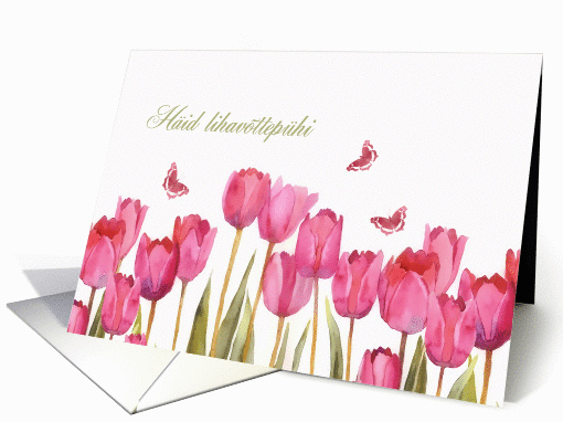 Happy Easter in Estonian, Häid lihavõttepühi, tulips, butterflies