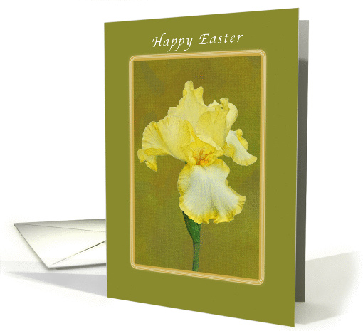 A beautiful yellow iris on a textured background, fitting for a card to offer wishes for Easter.