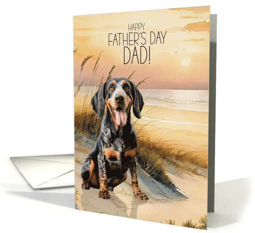 Father's Day Bluetick Coonhound Dog in a Sandy Beach Cove