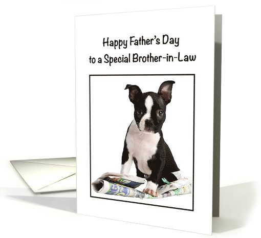 Your brother-in-law will enjoy this funny dog card. A Boston terrier puppy is reading the newspaper. Wish him happy Father's Day with this humorous card whether or not he is a dog lover!