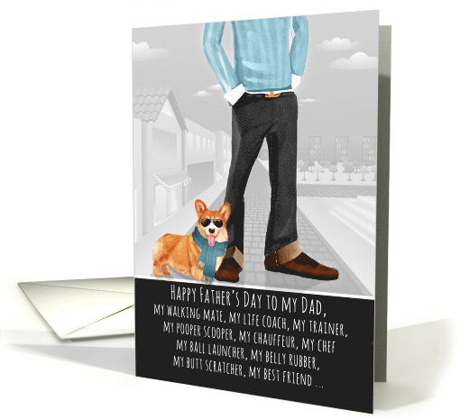 Welsh Corgi lovers and pet Dad owners will want to receive this funny and adorable dog breed specific Father's Day greeting.