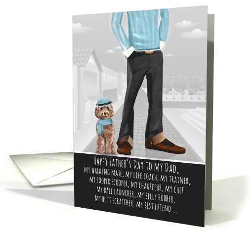 This adorable Cockapoo, or if you'd rather; spoodle or cockerdoodle creates a from the pet card for the pet Dad on Father's Day in masculine tones and style.
