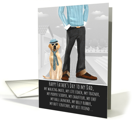 Too cute, this Father's Day card from the Dog Dad's Yellow Labrador Retriever is sure to bring wags, with a sweet dapper looking pup and funny message.