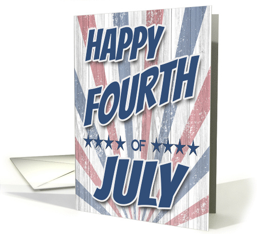 Classic word design with stripe wood background for Happy 4th of July card. The wood background is designed to be distressed like. Design © 2021 Julia Bryant.