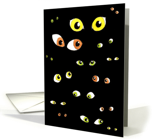 Halloween Eyes, © Diana Ting Delosh. Ink and watercolor illustration. Eyes that see, who goes bumping in the dark on Halloween.