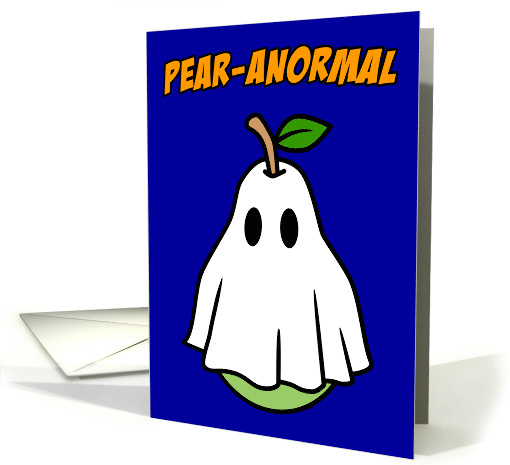 Pear-anormal is a scary pear dressed up as a ghost! This fruit is ready for Halloween! A silly food pun for the holiday season.