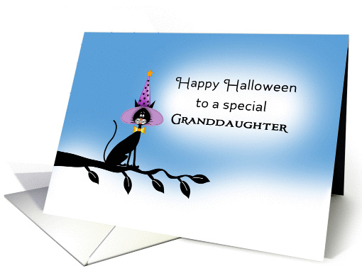 For Granddaughter Halloween Card - Black Cat-Witches Hat-Tree Branch