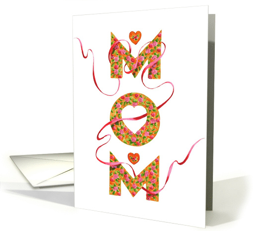Moms are such a wonderful gift from God and Mother's Day is a very special time to celebrate all their love and hard work. This MOM calligraphy captures this love with hearts and a pattern of roses for this lovely woman who brought you into the world. Christian message for God's blessings will warm her heart. Front:MOM Inside Verse:Thank God for you! May God's blessings be with you always. Happy Mother's Day. Original artwork and design by Audrey Ascenzo.