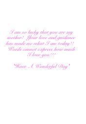 I am so lucky that you are my mother! Your love and guidance has made me what I am today! Words cannot express how much