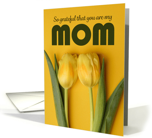 These two pretty tulips on a matching yellow background is a beautiful way to let your mother know that you are grateful for her when you wish her a Happy Mother's Day.