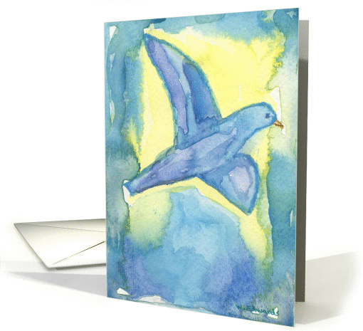 Mothers Day Greeting Card depicts a Beautiful Blue Bird in Flight... Singing its Heart Out. Created using my Original Watercolor Painting.