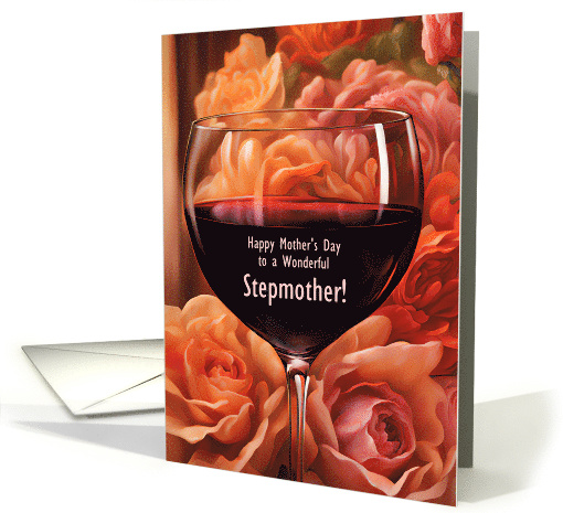 Stepmother Happy Mothers Day with Flowers and Wine Humor Custom
