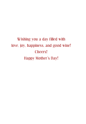 On the Mother's Day holiday a card of wine and flowers with great wishes for a wonderful Stepmom or Stepmother. You can change the wording on the cover to reflect the way you would like it to read.