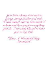 You have always been such a loving, caring mother and wife. Words cannot express how much I admire and love you for everything you do. I am truly blessed to have you as my wife.