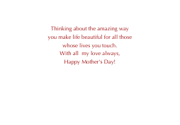To My Wife with Love on Mother's Day. Elegant watercolor painted peonies and roses with lush foliage and greenery, accented with a vintage 19th century style sign. Classic traditional typography with stylish handwritten script in red on white background.