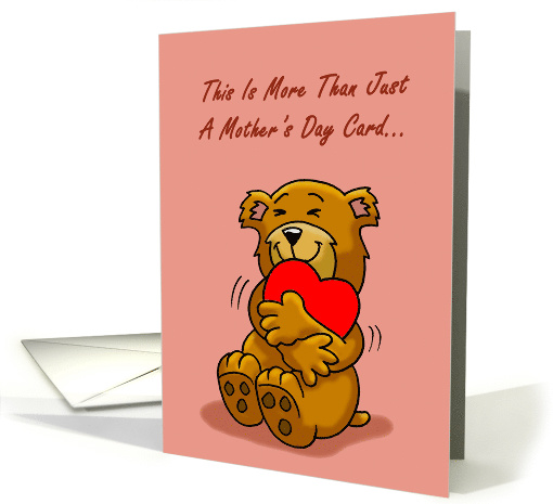 Mother's Day card showing a cute cartoon bear hugging a heart. Front says, This is More than a Mother's Day Card . . . Inside says, . . . It's a Long Distance Hug! Happy Mother's Day