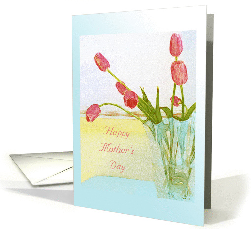 Happy Mother's Day, Special Indeed, Rosy Tulips in Vase
