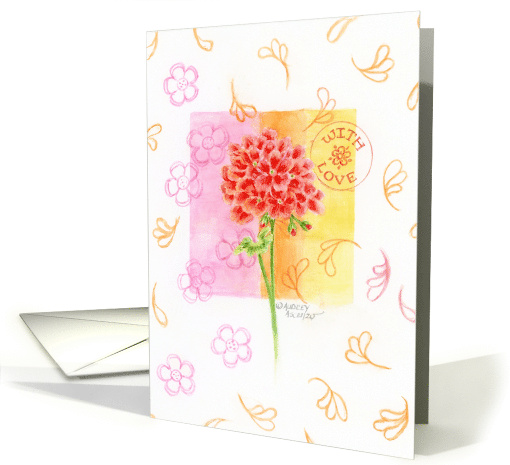 Red geranium stands beautiful yet strong for a mother on this special day! Inside Verse: Wishing you a beautiful day and may God always bless you, Happy Mother's Day! Original watercolor artwork by Audrey Ascenzo.