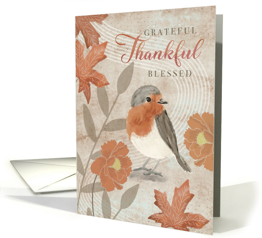 Thanksgiving Grateful Thankful Blessed Robin Flowers and Leaves