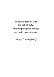 This humorous illustration shows a Thanksgiving turkey parachuting down while holding a pumpkin pie for the troops. It’s a great card for military members who can’t be with their families or for a veteran who deserves a smile and a slice of holiday cheer.