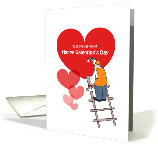 A valentine's day cartoon card, where a painter, worker is shown painting heart signs. Heart sign holds the message. A perfect valentine's day card for a special friend of yours.