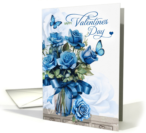 Gay Valentine's Day LGBTQ Vase of Blue Roses and Butterflies