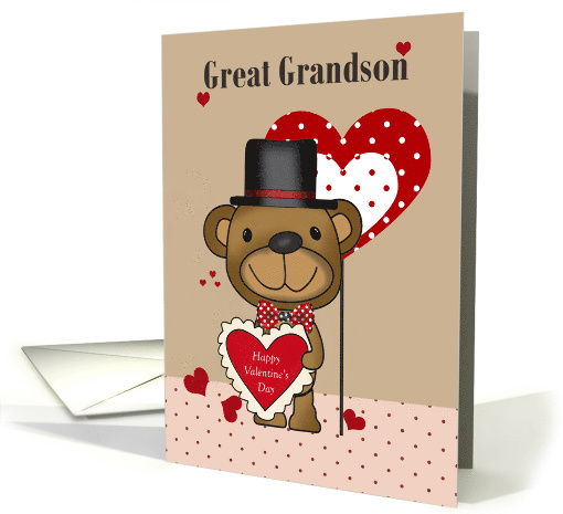 Great Grandson Valentine's Day with Brown Bear Hearts Top Hat and Dots