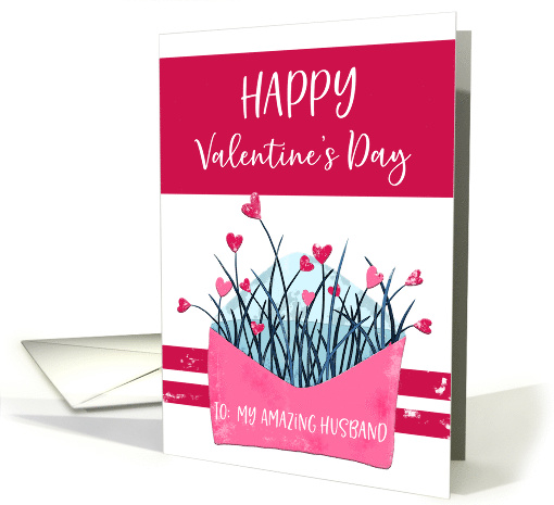 An envelope filled with hearts sends a message of love and affection for a special husband for Valentine's Day. The design has a bit of vintage feel with its distressed details.