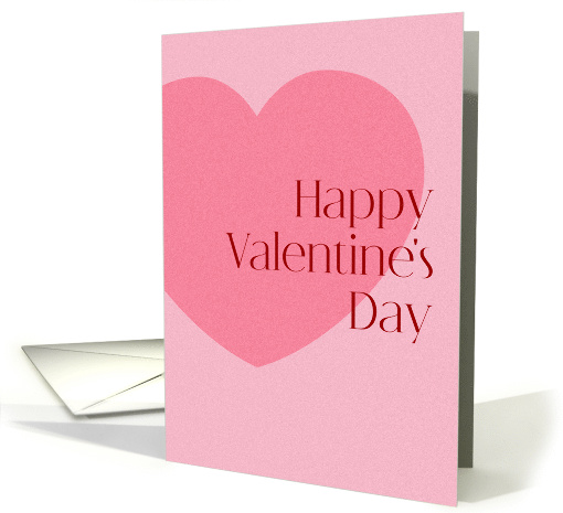 This Valentine’s Day card has contemporary, minimalist style with an offset heart shape in shades of pink. A grainy look adds modern style and vibrant red text reads ‘Happy Valentine’s Day’ in an elegant, understated typeface.