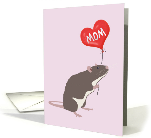 This sweet rat is holding a heart shaped balloon in its hand to match the feeling in its heart. Give this fun, unique card to your mom to show your love.