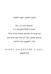 Funny and oh so cute is this bunny stepping out to wish some sweet child a happy Valentine's day. Colorful and bright in shades of red, green, and blue. See different categories for more specific children, ie. granddaughter, etc