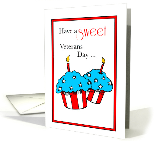 Remind someone they will always be a hero. This holiday is an opportunity to express gratitude to brave people for their service. Wish them a happy Veterans Day with this fun illustration in red, white a blue colors of two patriotic cupcakes with candles.