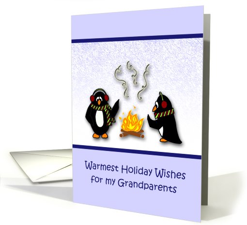 Warmest Holiday Wishes Grandparents-Penguins by the fire