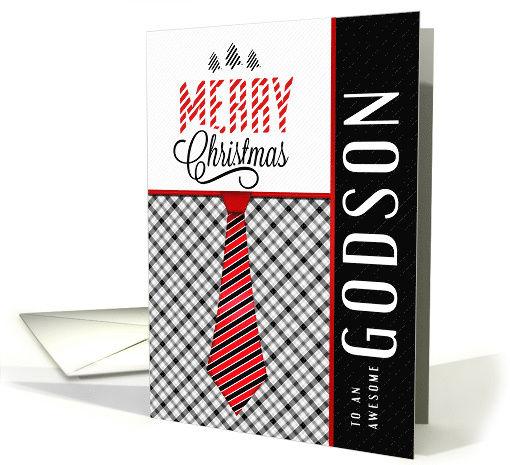 Your godson will smile when you send him this masculine holiday card with a sporty themed sentiment and your wishes for a Happy Holiday Season. Bold and boyish in black, red and white plaid and striped patterns.