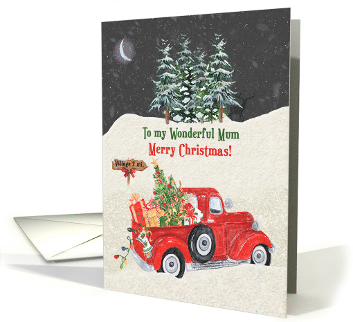 Mum Merry Christmas Red Truck Snow Scene
