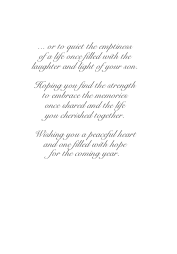 The holiday season can be extremely difficult for a parent whose son has passed and this card expresses understanding and comfort to help the sadness as they experience their first Christmas without their son.