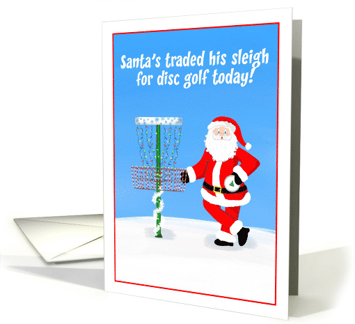 This festive Christmas card features a joyful Santa Claus standing proudly beside a disc golf basket that’s beautifully decorated with sparkling Christmas lights and striped candy canes. Perfect for disc golf players, sports lovers, and holiday enthusiasts, this cheerful holiday greeting captures the spirit of the season with a playful twist. Whether you’re sending Christmas wishes to family, friends, or fellow disc golfers, this unique design combines the fun of the game with classic holiday charm. Celebrate the season with laughter, warmth, and a love for disc golf in a card that’s as merry as it is original.