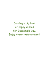 A fun and festive Guacamole Day card featuring two smiling avocados with a green ribbon banner that reads “It’s Guac O’Clock!” Confetti adds an extra cheer to this playful illustration. Perfect for sending lighthearted wishes to guacamole lovers and friends who enjoy this tasty celebration on September 16. See more designs from my stores below. Sandra Rose Designs: https://www.greetingcarduniverse.com/sandrarosedesigns