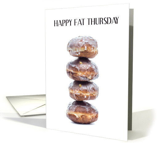 Four delicious looking iced Polish donuts stacked on top of each other, against a white background. The words 'Happy Fat Thursday' accompany the image.