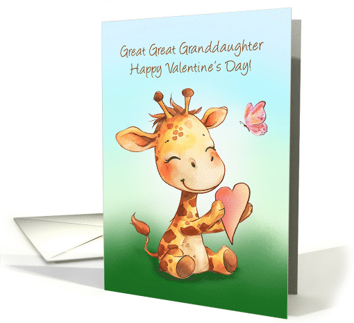 Great Great Granddaughter Valentine Cute Happy Giraffe with Heart