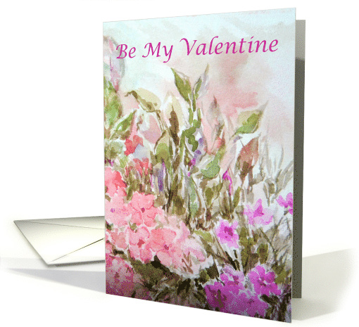 Invite your valentine to be yours with these sweet flowers from the garden. Pink, magenta, and purple impatiens are from a painting by Mary Ann Cochran.