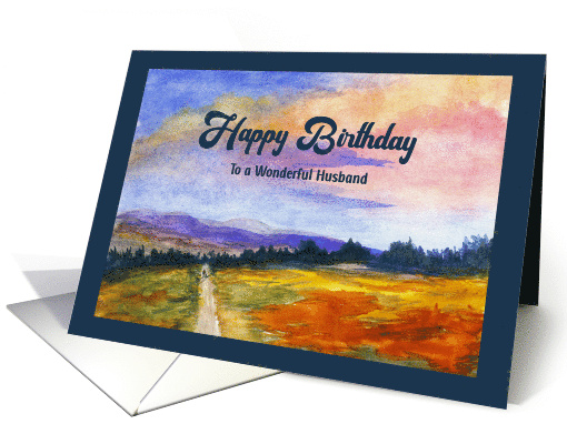 Happy Birthday Husband Landscape Man Dog Mountains Clouds Watercolor