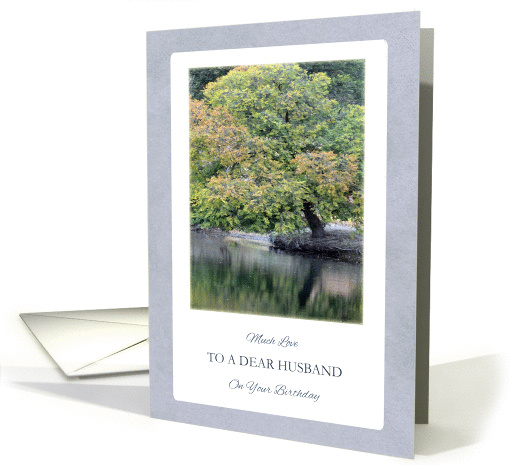 Much Love to You on your Birthday features a photograph of a quaint and colorful tree and it's reflection on the water. With a soft blue background, it's a perfect birthday card for husband. Design also available for Brother and Friend. Original Photograph & Design by Sue Nollmeyer©2013