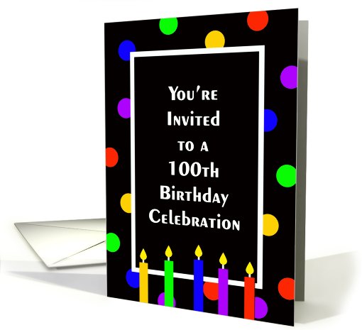 100th Birthday Party Invitation Card -- Bright Polka Dots and Candles