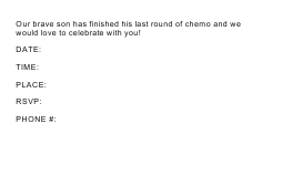 Our brave son has finished his last round of chemo and we would love to celebrate with you!